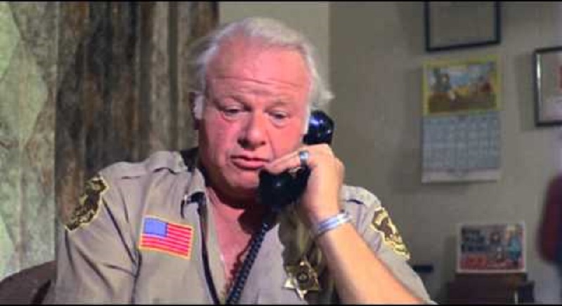 Of the most importance to this reviewer is the presence of Alan Hale, Gilligan Island‘s “Skipper”, as the town sheriff. As expected, he is the source of most of the film’s comic relief, although the entire movie is very tongue-in-cheek. There’s really not much difference between the “Sheriff” and “The Skipper” other than the “Sheriff” behaves a little more like Gilligan. The character is portrayed as a dimwit, but Hale plays it as if the character is actually smarter and more in control than he lets on. This later proves true when his character tries to take charge during the spider’s stroll through town. It’s also worth noting that his shirt was always unbuttoned 1 button past “unprofessional”.