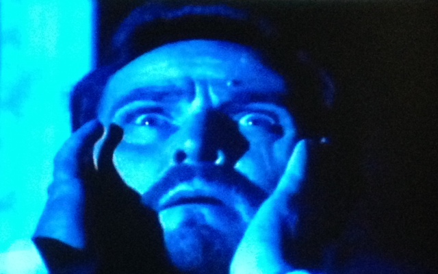 Despite the impending atomic explosion, the crew investigates the sabotaged satellite first. In order to reach the satellite, John must do a space walk to it from his ship. He steps out of the ship’s sliding doors (airlocks are so passé) and floats through space towards the disabled satellite. Ok, so “floats” may not be the right word as it’s really more along the lines of the actor laying on his stomach and making “snow angels” while an incredibly generic backdrop of stars moves behind him. The music is supposed to convey the sensation of floating in space, but instead sounds more like the intro to The Moody Blues’ “In Your Wildest Dreams” as played by an ice cream truck. John reaches the disabled satellite and accesses its main computer banks by pulling something resembling a AAA battery out of a circuit board. Judging for the apparent budget of the film, it was probably one of those cheapo batteries that you can buy in a pack of like 136 for $5 at the Dollar General. Which explains why it crapped out.