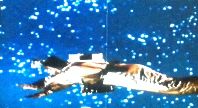 John and his crew finally set off to the planet of Anthor to rescue their fellow Earthlings. Their ship is soon approached by 2 Anthoran (is that what they’d be called?) fighter ships. The film proudly puts the “special” in special effects as the vessels each resemble 2 hub caps glued together, top to bottom. Despite their technology being advanced enough to develop ships capable of interstellar flight, they’ve not harnessed the ability to fly in anything other than a straight line. At least the ships leave minimal debris when they explode, which really cuts down on the amount of space trash just floating around out there.