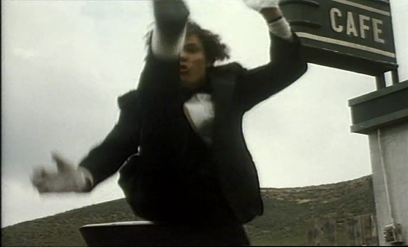 2 more friends, Chuck and Stacy (the “Robin” to Chuck’s “Batman”), arrive on the scene. Chuck is dressed like a magician, complete with wand and cape. Chuck is also Terri’s ex-boyfriend, so his arrival is not a welcome sight for Dell. It’s okay for Dell to tongue up on other people’s girlfriends, but don’t you look at his. He even throws a beer can at Chuck when he arrives, but Chuck swats that shit into the air with his wand like he was Mandrake. Ok, so I don’t know if that was something Mandrake the Magician ever did. I highly doubt that he knew karate. However, Chuck does. He proceeds to unleash a series of spinning roundhouse kicks and launches the can back at Dell, hitting him in the forehead. At what point in time did I start watching Pieces?