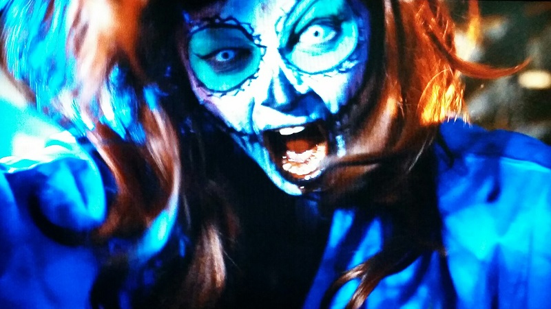 The film then returns to before Barry has killed his family to focus on Brooke. Brooke (Bianca Brady) is an artist. At least, I think she is. As the film opens, she is air brushing a model into a living Dia de Muertos-themed Monster High doll. The model goes all zombo for no specified reason, forcing Brooke to hide in the rafters while it attacks and kills her photographer. While she’s up there, she calls her brother and warns him to flee for safety out of the city. Soon after, a roving military unit arrives, gunning down the zombies and taking Brooke captive.