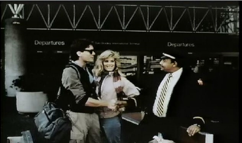 Meet Bob and Helen Hewitt (Lorin Jean Vail), a young couple from Los Angeles, on their way out of town for Helen’s aunt’s funeral. In case you weren’t sure that they are preparing to leave town, there are plenty of airport still-shots to clue you in. There are shots of them smiling in the airport terminal. There are shots of them smiling as they walk to their plane. There are shots of them smiling as they chat with a limo driver. Smiling, smiling, smiling. All of this happiness seems in stark contrast to the Ministry-inspired, synth-based opening score.