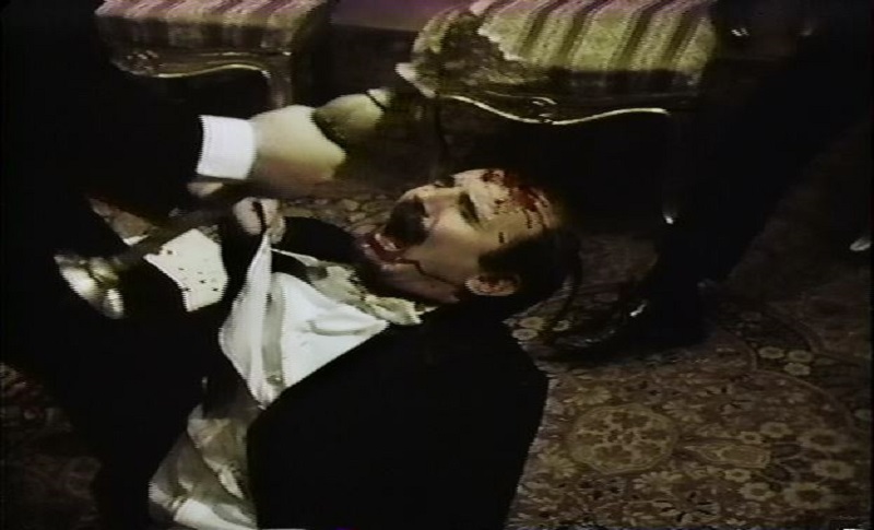 There are a few humorous scenes along the way, although I don’t believe they were intended to carry that way. There is one pivotal scene of brutally-intended slaughter that quickly becomes a comedy of errors due to the use of some incredibly flimsy fake knives. Even the following scenes of gore are too low-budget to illicit more than a couple chuckles.