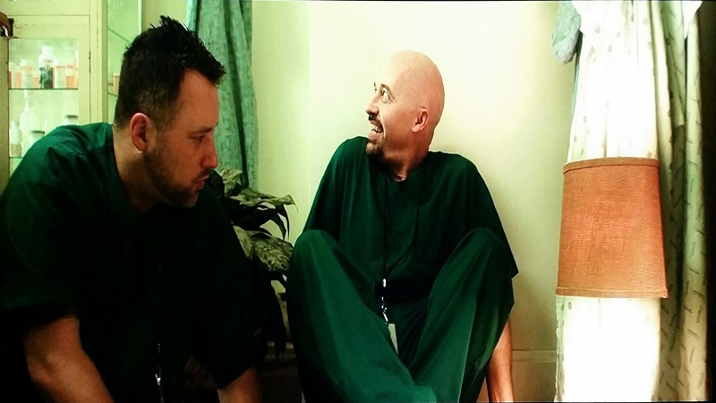 Emily is excited to inform her staff about a new patient being transferred to Green Park. That patient is soon revealed (unsurprisingly, to anyone that watched the trailer or read the back of the case that the disc came in) to be Sam, now played by Willie Minor (Born On the Fourth of July, I Come In Peace). As doctors don’t do the “menial” jobs, the task of preparing a room for Sam is given to the head nurse, Jennifer (Megan Emerich, who also co-wrote the script). She, in turn, assigns the job to Billy (indie-horror writer/director/actor Jim O’Rear) and Bishop (actor and Ghost Hunter Scott Tepperman), the clinic’s bumbling male nurses.