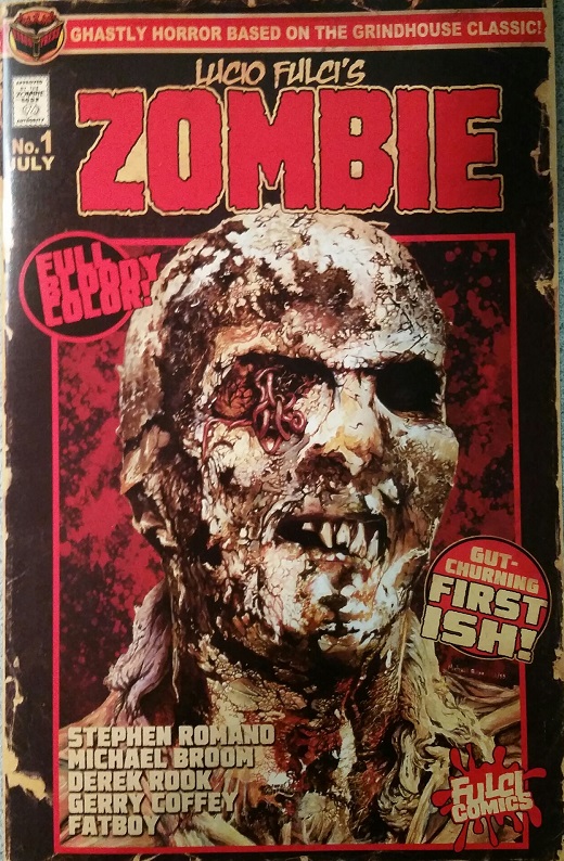 On June 10th, 2016, Fulci Comics (a sub-label of Eibon Press) made available for pre-order a new (kinda) comic based on Lucio Fulci’s 1979 undead opus, Zombie (aka Zombie Flesh Eaters). 1,250 copies were printed, each coming sealed in a sleek collector’s sleeve featuring an interpretation from artist Michael Broom of the film’s iconic poster image, as made famous by actor Ottaviano Dell’Acqua. Of those 1,250 copies printed, 250 were signed and numbered by the comic’s author, Stephen Romano.