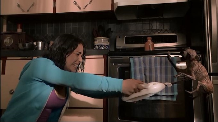 Carlos arrives in time to save his daughter and her friend, taking them to safety at his house before returning to work. He would have been better off sticking around because the suckers soon show up at his house to continue their attack. They force their way in, leading to a fight in the kitchen that is a complete rip-off of the scene in Gremlins with Billy’s mom using appliances in her defense.