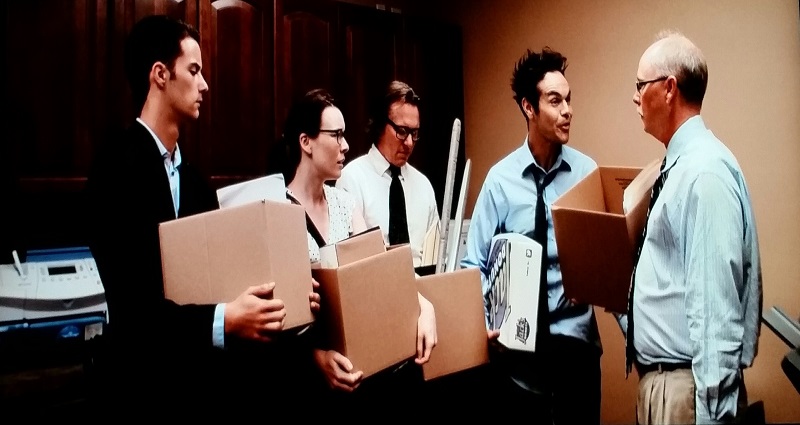 Donnie breaks the news of the terminations to his team. Feeling guilty, he offers to take them out for a round of drinks….. even though it’s only 11am. There are some groans, but they all reluctantly agree to go. As expected, they are all shit-faced within no time. The liquor starts talking and the topic is revenge. Ideas range from Steve’s wanting to TP the man’s house to Books wanting to cyber-bully Danielle into committing suicide. It’s Donnie who first brings up the ransom idea. The majority of the group slurs agreement, but Steve diffuses the situation by telling them to wait and see how they all feel about the idea in one month’s time. Steve is banking on them losing the nerve (or completely forgetting the idea) in the morning after the liquor has worn off.