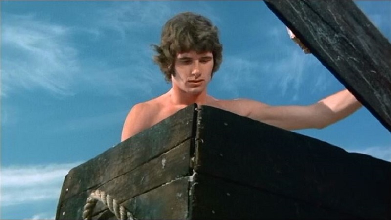 As the film begins, some creepy looking brother named Barbado is seen sitting on a beach. He plays a small wooden flute, seemingly lost in his performance of some sort of ritual. He’s no Ian Anderson, but he plays well enough to cause a coffin to rise from the watery depths. Waves wash the coffin ashore, where a passing surfer finds it. He opens it and manages to snatch a quick peek inside, but is quickly throttled to death by Barbado before he can even comprehend just what he’s looking at. Barbado drags the coffin with him down the beach, leaving the dead surfer’s body on the beach sands.