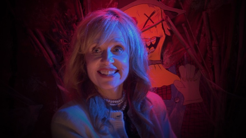 The “haunted house” shenanigans draw the ire of Ms. Barnhart, the town’s self-appointed guardian of the religious right, who wishes to stop Sam and Josh’s annually scaring the kids with “scary stories”. After tricking Barnhart into her own good scare, she calls Sam’s father to complain. As punishment, Sam must now spend Halloween going door to door collecting canned goods for the church’s food drive. “Barnhart” is played by horror stalwart Linnea Quigley, here pleasantly cast very much against type, or at least the “type” she usually played in the 1980’s. Quigley gives, in my opinion, one of her strongest performances and adds some credibility and horror “prestige” to the affair. Even Ari Lehman, who I (admittedly) usually find a little annoying, is quite appropriately cast as metal show host “Doctor Rock”, and is solidly entertaining in the few minutes of screen time that he gets.