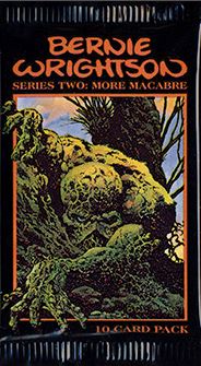 Released by FPG, Inc. in 1993, Bernie Wrightson: Master of the Macabre Trading Cards were a 90 card series featuring a collection of characters and scenes illustrated by Wrightson. This card series features a wide selection of monsters and maniacs, more than a few iterations of Swamp Thing and Frankenstein’s Monster, and a couple of creatures that could easily be kin to the Aliens series’ Xenomorphs. Cards were available in complete sets as well as in foil packs containing 10 cards. Each sealed box of foil packs contained 36 packs. After selling quite successfully, a second series entitled More Macabre was released in 1994.