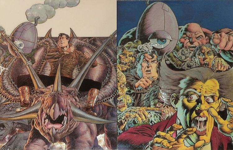 As with the Mike Ploog trading cards (also released by FPG), Bernie Wrightson: Master of the Macabre Trading Cards packs featured their own “chase cards”. Series 1 featured “Horrific Hologram” cards, as well as the more desirable autographed cards. Series 2 was no exception, also including autographed cards and “Metallic Sternn” cards, a nod to the “Captain Sternn” character that Wrightson created for Heavy Metal. Captain Sternn also saw the release of a short-lived comic series right around the same time as the second card set, so there was an obvious “tie-in” to be exploited.