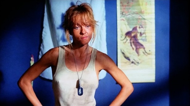 In what may be the film’s pivotal scene, Linnea breaks out the “money makers” and takes that shower. However, before you get too excited by the prospect of yet again seeing her “perkier” side, do know that she is accompanied in the shower by Butch. So, honestly, there are now 4 large breasts on display. Besides Linnea’s ubiquitous boobies, the scene is made infinitely more memorable when Blanca forcibly informs Butch that he “is going to come…. and soap my backside”. Oh, the way that she lingers with that little pause.