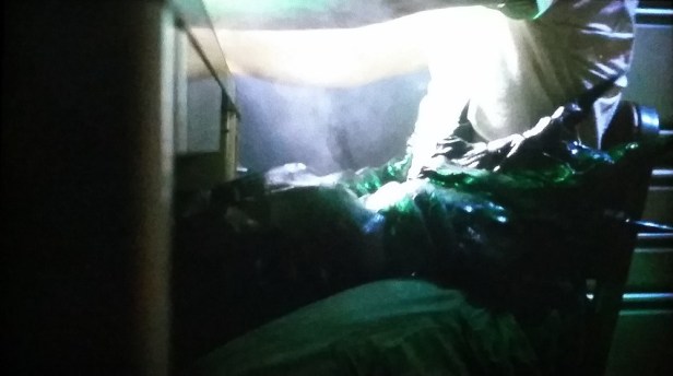 There is what seems like an almost fleeting notion of further developing the romantic involvements between characters, but the idea is quickly dropped when the creature’s first “victim” surprisingly resurfaces showing no visible signs or memory that anything even happened. That is, until he has an “incident” at breakfast that would only be more of a rip-off of Alien had something actually burst out of him.