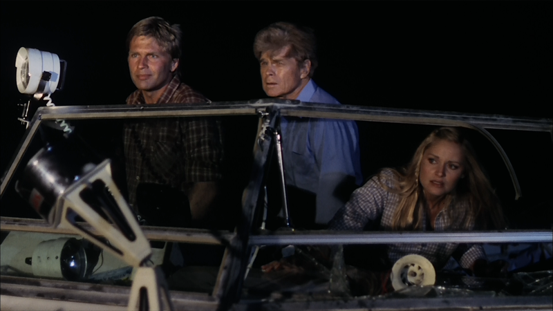 Robert Lansing, star of other killer animal flicks such as Empire of the Ants & The Nest, plays “Moody”, the bar’s owner. Also introduced in this scene is the bar’s lone bartender and Moody’s love interest, “Rosie”, played by Nita Talbot (Puppet Master 2, Chained Heat). It’s interesting to note that while these 2 actors received top billing, neither of them are main characters, although Lansing has a more pivotal role. Horror fans may also recognize Friday the 13th Part 2‘s John Furey as part of the cast.