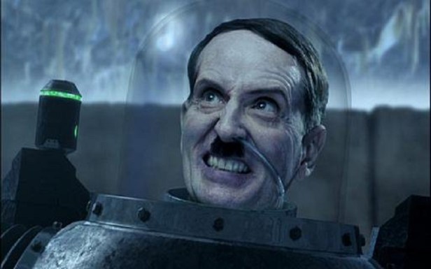 From this point forward, Nazis At the Center of the Earth becomes a bizarre mix of They Saved Hitler’s Brain and The Iron Giant. The severed head of Adolph Hitler is revealed to be alive and…. well, alive in the machine featured in the film’s opening sequence. In a directional decision that elicited more laughs than it probably should, the head alternates between that of an actor of only moderate resemblance and a CG recreation that rivals the quality found in the cinematic sequences of a Playstation 1 game.
