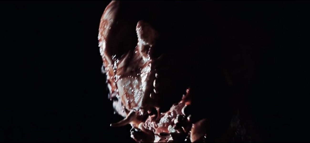 Hellstone‘s biggest “selling point” is undoubtedly in the special effects, most of which are accomplished with the use of little to no CG. Make-up and facial appliances look rather decent. The large abominations inhabiting Hellstone‘s “underworld” are also created without the use of computer effects and are fairly impressive. That is, until you get an extended look at them. The creature design is rather singular, with the monsters looking like a jigsaw of limbs and torn flesh. However, while there is valid reason to be proud of the beasts, they tend to be left on-screen and in full-view for a touch too long in most instances, which serves to accentuate the flaws and budgetary setbacks in the execution. Quite honestly, at times they just look like silly over-enlarged hand puppets, which is what they kinda are.