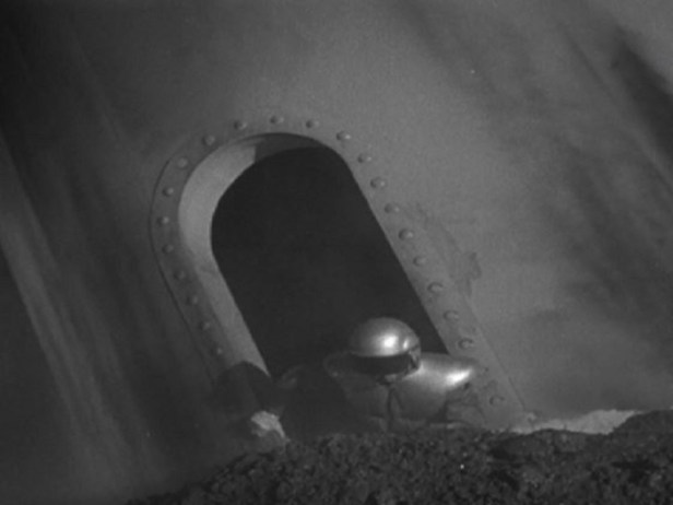 Attempts to get near the ship are thwarted by intense heat radiating from the ship’s hull, but Quatermass finally arrives on the scene and rushes to take charge of the rescue operation. Racing against time, and concerned for the safety of the men trapped inside the ship, Quatermass devises a plan to lower the temperature of the ship by ordering the fire department to blast the ship with water. The plan works and soon a hatchway opens. One of the astronauts, Victor Carroon (Richard Wordsworth), suddenly crawls out of the craft and falls unconscious to the ground.