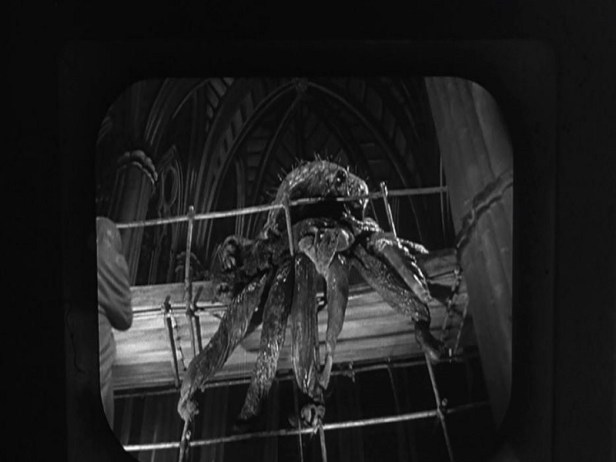 In the end, it is the special effects that add the final coup de grace to the film’s climax as Quatermass and Inspector Lomax finally locate Carroon. They find him inside an old church in the middle of a live television program, but Victor is no longer human. Instead he is now completely transformed into a part beast/part plant, slithering Lovecraftian nightmare. Quatermass realizes that the creature is growing exponentially before their very eyes and must be destroyed immediately before it gets too large. He does so in a manner which is reminiscent of another classic 50’s science fiction movie, The Thing from Another World, using electricity to destroy the monster.