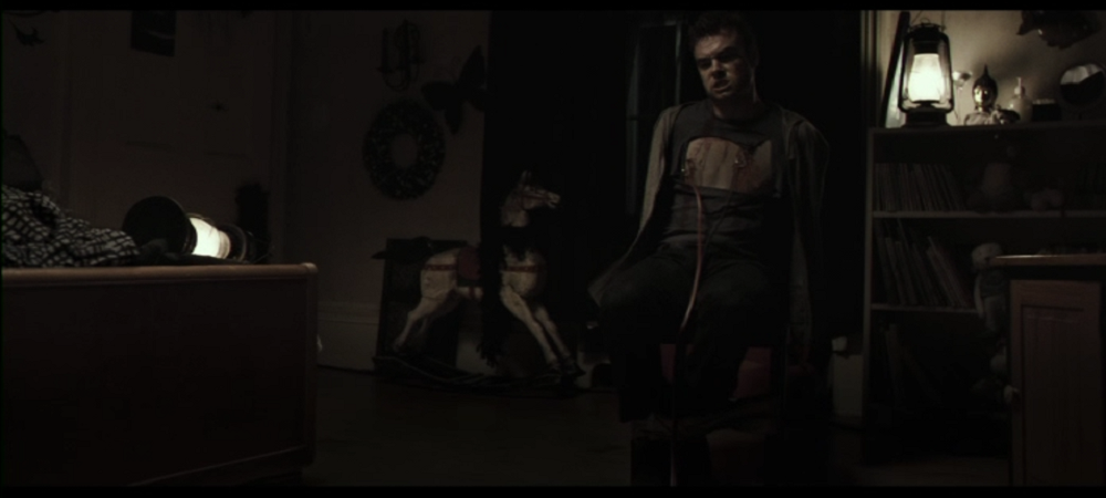 Police are contacted, but the deputy (Stephen McHattie – Pontypool, Death Valley) dispatched to the house is less than concerned, attributing the “break-in” to teens who found an empty house in which to party for a few days. He gives them his card and leaves. Cory sets to boarding up the hole, refusing to leave the cabin for what he also believes to be just kids. He finishes the job and heads back upstairs to his family; the light seeping in when he opens the door at the top of the stairs, faintly illuminating down on what appears to be a family hidden in the shadows of the cellar.