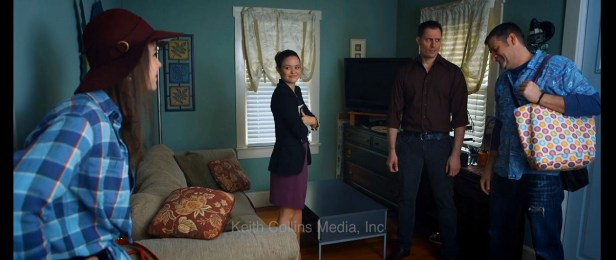 Together, this is the entirety of the cast. There are no extras or bit players. Just the four actors shooting scenes in only two rooms. 4 + 2 = 6, which is coincidentally the number of days that it took to shoot the film. However, while some indie filmmakers may bemoan these limited resources, The Samaritans uses these “shortcomings” to its advantage.