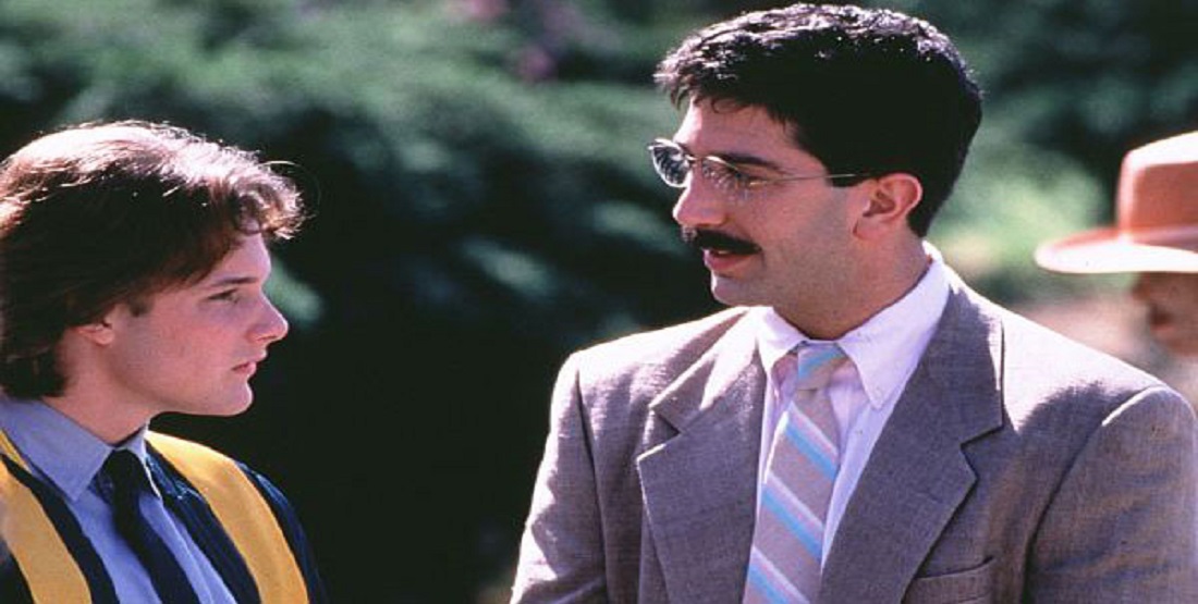 He receives his mid-term grades and realizes that he, once a Valedictorian student, is now in danger of losing everything for his future. Kurt poses as his grandfather and goes to his guidance counselor, who is played by David Schwimmer sporting a tasty 70’s porn stache. They make a deal that if Todd gets all A’s, the school will get rid of his poor grades and make sure he gets credit for his good grades that he had throughout the year.