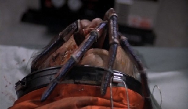Marci and her crew arrive at the compound, and after one of the worst games of “hide and seek” I’ve ever witnessed, manage to infiltrate the lab without being seen by any of the soldiers. Along the way, they also discover that maybe the couple that Marci was interviewing during the opening segment weren’t as crazy as they appeared. They soon find the injured astronaut and attempt to question him about what actually happened aboard the shuttle. He mentions a “Project: Mother-In-Law” before vomiting bile all over Marci’s face. This is followed by the much-too-large-for-this-guy’s-head spider crawling out of the man’s mouth! The two doctors that had been attending to the man choose this inopportune time to return, resulting in one being killed, while the other is dragged off to presumably be used as food later.
