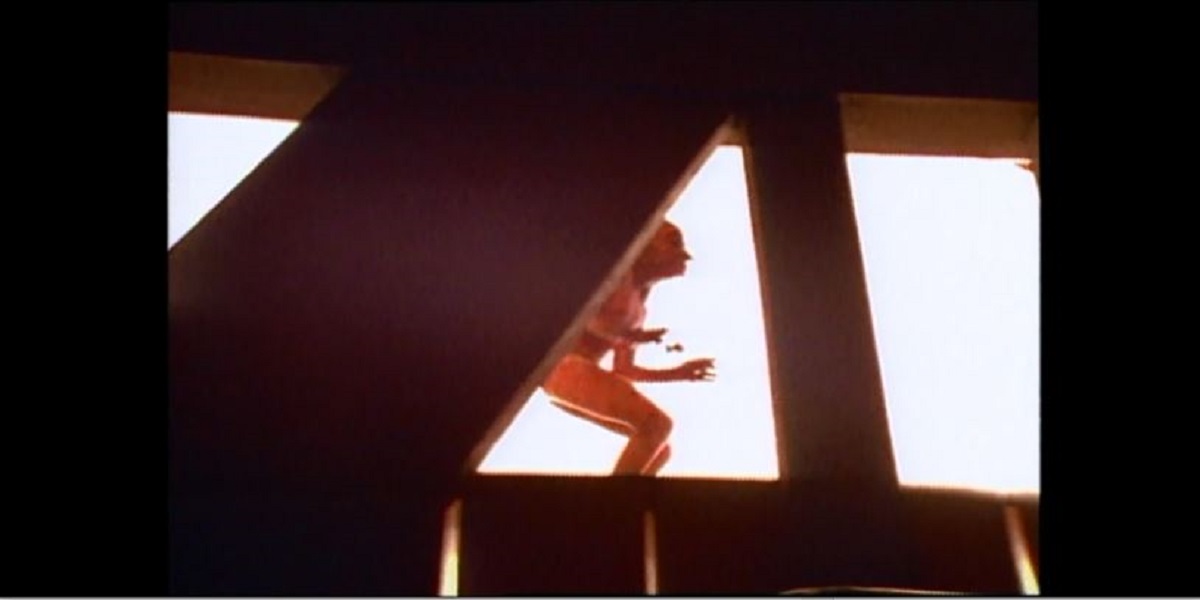 In “Who’s There?”, a creature escapes from an experimental research lab and finds its way to a city park, where it has an encounter with a jogger. This one ends in rather goofy fashion, but most assuredly not in the manner that most might expect. Considering the low budget, the creature effects in this tale are quite nicely handled.