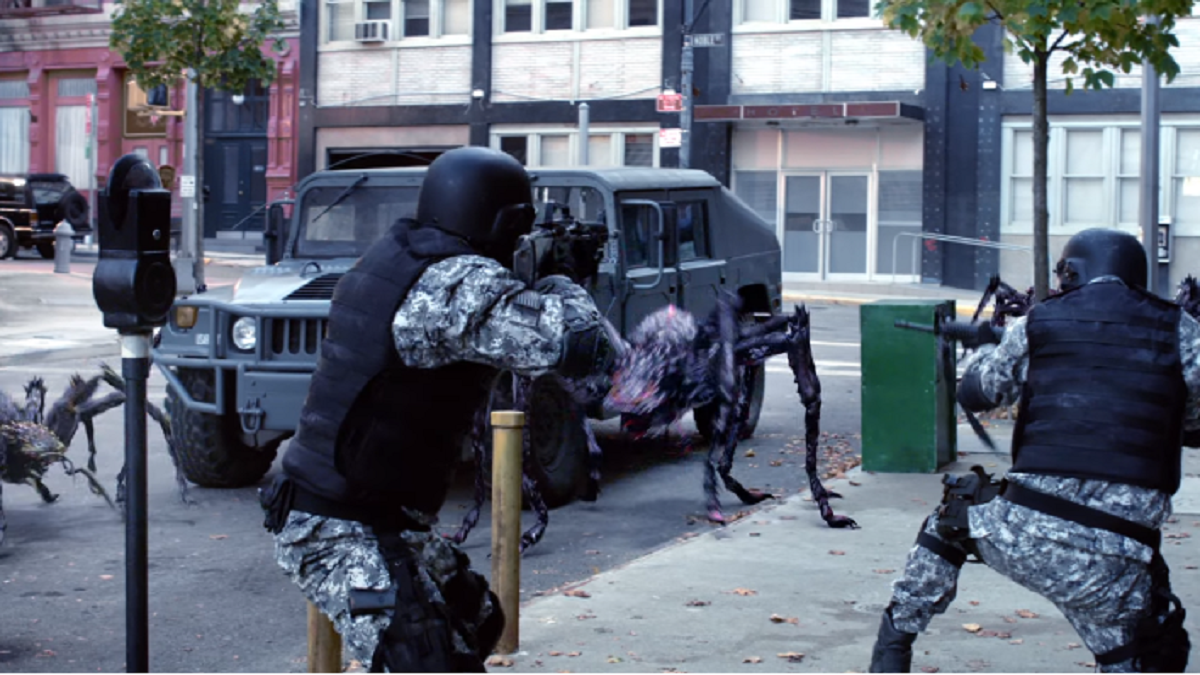 Eventually, at just past the hour mark, the gigantic queen spider finally emerges. This large CG monstrosity, which is big enough to span the width of the city’s streets, begins a Godzilla-like path of destruction, picking off countless disposable soldiers and one rather undeveloped and unessential supporting character. However, by this point, it may just be too late in not only the film, but also the series, to provide many thrills.