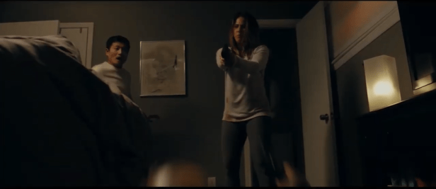 Unbeknownst to either, just prior to their moving in, a thief hid something somewhere in their house; something that is of great importance to some other rather nefarious gentlemen. As the couple are sleeping one night, the thief returns to retreive his stash, alerting Heather to his presence. Grabbing a handgun from her bedside, she searches the perimeter, finding a door open to the crawlspace under her house. As she investigates, she can hear the man yelling at her husband in the house above. Using what I can only assume is some Ecco the Dolphin-level sonar bullshit, Heather pinpoints the intruder’s position and fires 2 rounds through the floorboards, dropping the perp.