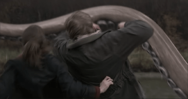 We, the viewer, know that these horny teen lovers were, in fact, attacked by a large lake monster, its large tentacles crushing their boat. The creature isn’t much of a secret, although most people believe it to be nothing more than myth; a local legend that has become the town’s claim to fame. The legend manages to draw a few tourists, including one particular family with a young son who vocally challenges the creature’s existence. He begins to question this skepticism once his father goes missing during a stroll along the lake shore.