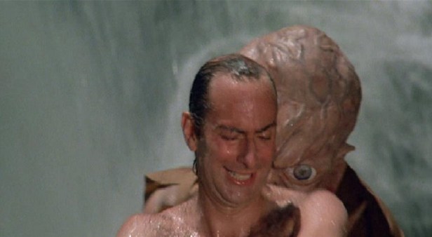 After convincing the judge (Macdonald Carey – “Days of Our Lives“, Hitchcock’s Shadow of a Doubt) that he is able to communicate with and pacify the monstrosity that stemmed from his loins, it is determined that the child, as well as the few other remaining mutant babies, will be sent to live out their lives on a deserted island located somewhere off the coast of Florida. What the babies are supposed to eat on this island is never mentioned, but the children have no trouble in soon finding a (albeit limited) source of food.