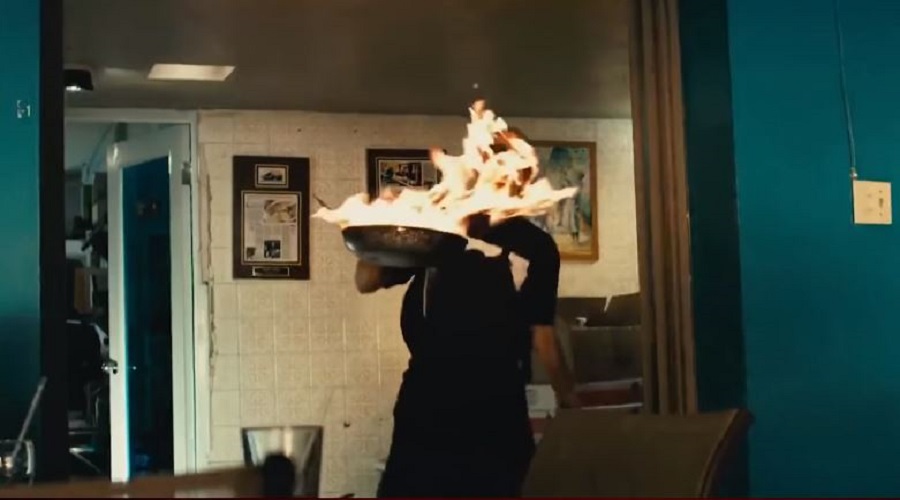 The shark continues its attacks, eating and/or incinerating more swimmers, body surfers, boaters, and parasailers. There’s even a sequence featuring the staff and patrons of a beachside bar and grill called Tales from the Dockside (spelled “Tails” on background signage), as well as the crew of a televised restaurant-review show, bursting into flames after munching on some toxic fried fish. Unfortunately, this is all achieved through the use of some highly unconvincing CGI effects. In fact, some of the extras don’t even seem to know that they are supposed to be on fire, looking quite calm and complacent with the fact that they are burning to death.