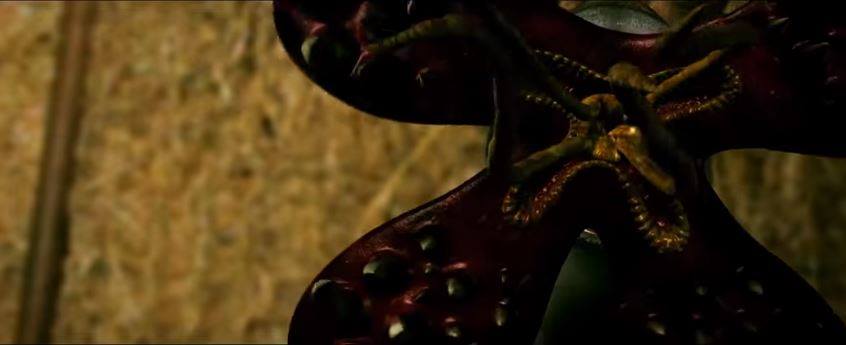 Most of the film’s female cast find themselves locked away in a barn as part of the alien’s breeding project. They also find themselves topless for most of their screen time as well. Alien “fetuses” are embedded into the abdomens of the chosen women, only to later crawl their way out of the women’s vaginas in a life-ending shower of blood. Despite not being quite as graphic as it sounds, the few “birthing” scenes are possibly a little distasteful, but also doesn’t really add much to the plot.