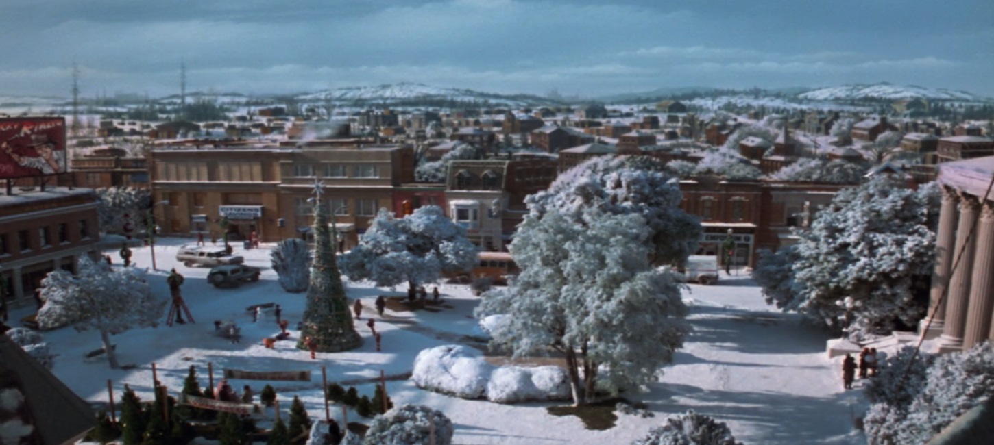 It’s just not what we think of when we think” blockbuster.” The opening scene screams noir. A man walking down crowded, dimly lit, and smoky streets. A voiceover, identifying as Randall Peltzer (Hoyt Axton), an inventor “making the illogical logical”. A loving dad trying to provide for his family and find a nice Christmas gift for his son. A boy leads Randall into a basement shop, where the proprietor watches silently as the inventor attempts to sell him on a not-quite-functioning invention. Sensing the sale is going nowhere, Randall makes his way to a creature singing in the back of the store. At least he found the perfect gift, right? Maybe not, the proprietor isn’t having it. He, in some of the heaviest foreshadowing of the 80s, doesn’t think Randall can handle the responsibility. He leaves, and a short time later the boy sneaks out the cage and as foreboding music builds, we first hear those three rules. Keep him out of the light. Don’t get him wet. And the most important rule… “never, never feed him after midnight.” The warning is shrugged off, the music swells, and…it’s Christmas. A jarring transition to small town America, Christmas music plays as we pan across the snow-covered street.