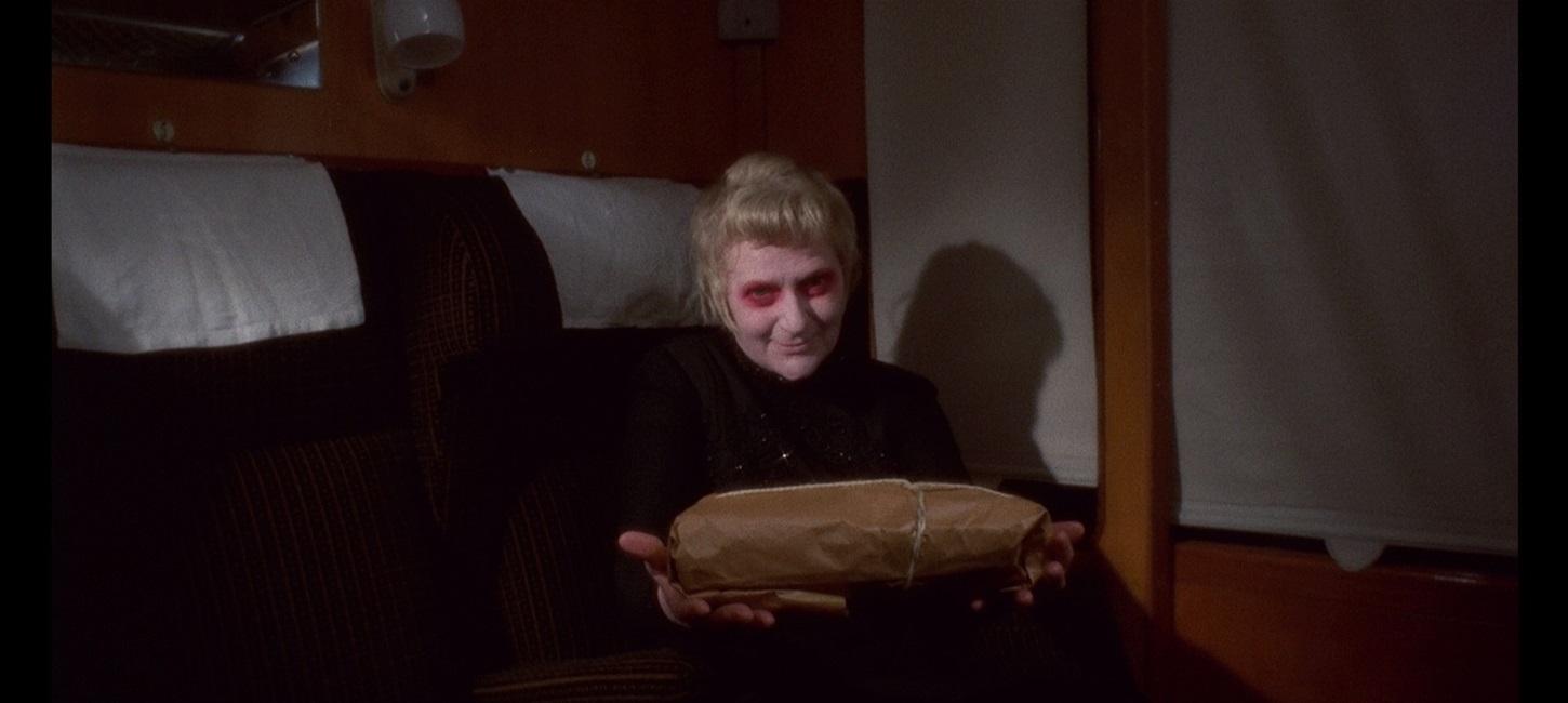 Strangely, the filmmakers did not include a scene where we see Dorothy actually consuming anything, and a fear of the censor is the only explanation I can come up with as to why this was overlooked. Walker’s exploitation films frequently depicted older characters who couldn’t be trusted not to torture and/or murder the younger people around them, such as the villainous priest in “The Confessional” (aka “The House of Mortal Sin“) or the unhinged ‘warden’ and staff of an illegal prison in “House of Whipcord“. In these other movies, the villains are driven by a sense of superiority, but in “Frightmare“, it’s simply the desire to eat a good meal.