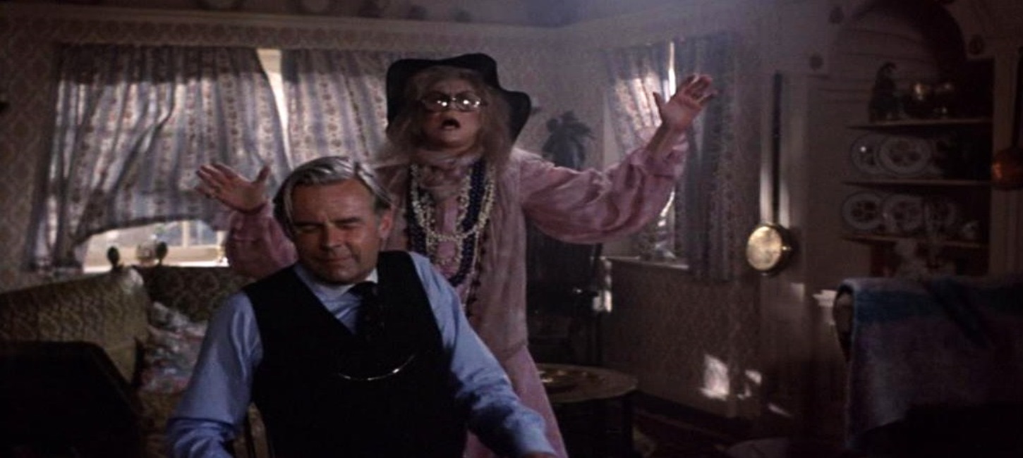Story three is definitely the whimsical piece and is my second favorite. It starts with Reggie, a businessman who visits our antiques shop and has his heart set on an ornate snuff box. However, upon seeing the 40-pound price tag, he makes the fateful mistake of switching pricing with a cheaper box. On his train ride home, he shares a carriage room with a clairvoyant named Madame Orloff (brilliantly played by Margaret Leighton), who tells him no less than three times that she sees an ‘elemental’ attached to his shoulder. We learn that elementals are demon spirits who attach themselves onto people to feed on their souls so that they can materialize in the real world. She offers her services, but he refuses and thinks the whole thing silly. Over the next few days, elemental hijinks ensue, and Madame Orloff is employed to exorcise the demon. Another twist awaits (although this one is more predictable).