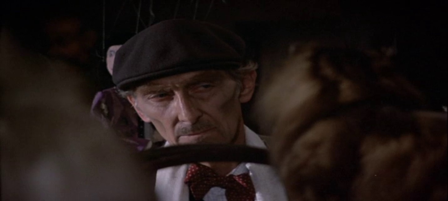 Throughout the antique shop scenes, the shop keeper keeps his eye on a shady character who looms around the alley in front of the store. After our last thief/sheister makes his purchase, the shady alley guy makes his move, which is to rob the shop. We’ll just say that Peter Cushing holds his own and no one who visits this shop for devious purposes has a happy ending.