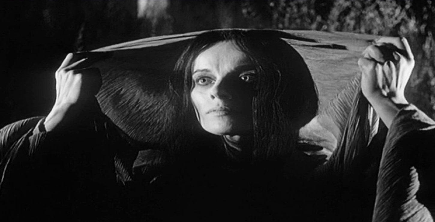 Yvette Rees as “Vanessa” is highly reminiscent of Barbara Steele, who had been chillingly effective as a resuscitated, vengeful witch in Black Sunday (1960), and as a result kept coming back from the dead over and over in subsequent films. In this case, Rees wears a simple funeral shawl and very little makeup, instead relying on Arthur Lavis’ excellent black and white photography that bathes her in shadows. In addition, a low-key but ominous music score enhances her ghostly, malevolent presence (courtesy of Carlo Martelli).