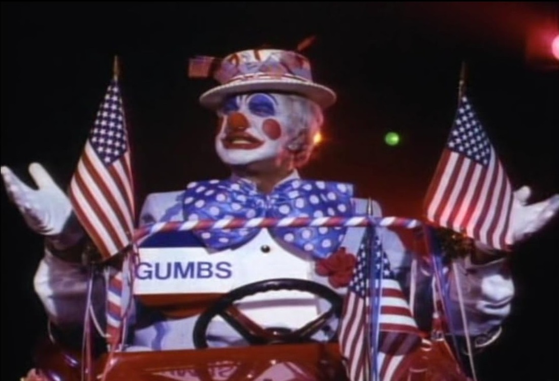 Dick Shawn (It’s A Mad, Mad, Mad, Mad World, 1983’s Angel) stars as “Bo Gumbs”, a boastful and boisterous politician campaigning for the office of governor, presumably somewhere in the “Deep South” and possibly some years in the past as the clothing, decor, and behaviors presented in the episode do feel somewhat dated even by 1980’s standards. Gumbs campaign is one built entirely on facade, having no real stand on any pressing issues and perhaps no real understanding. For him, politics is nothing more than a “show”; working up a crowd with a joyful tone, but actually saying nothing.