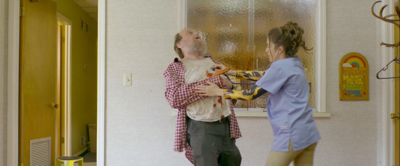 William Tokarsky, who appeared on both the Adult Swim series “Your Pretty Face Is Going to Hell” and as the machete-wielding maniac in the network’s now-infamous “Too Many Cooks” short, stars as the film’s unwilling father-to-be-or-not-to-be. Avra Friedman, who appeared on the Starz series “Now Apocalypse”, co-stars as (apparently) both the clinic’s receptionist and resident abortionist. Per IMDb, Friedman also appeared on a few different “true crime” programs in their early career, which is admittedly much more interesting to me, but probably not as interesting as it would be to my wife (who has watched all of those shows.) Rounding out the cast is Greg Wattkins (stunt performer and actor who has worked on “The Walking Dead”, “Stranger Things”, and Black Panther) as a police officer assigned to protect the clinic from the angry and potentially violent protestors gathered outside the building.